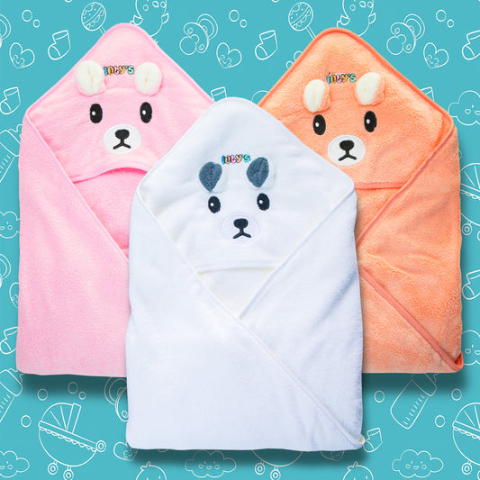 Ioly's Baby Hooded Towel ( White_Pink_Orange ) Pack 3